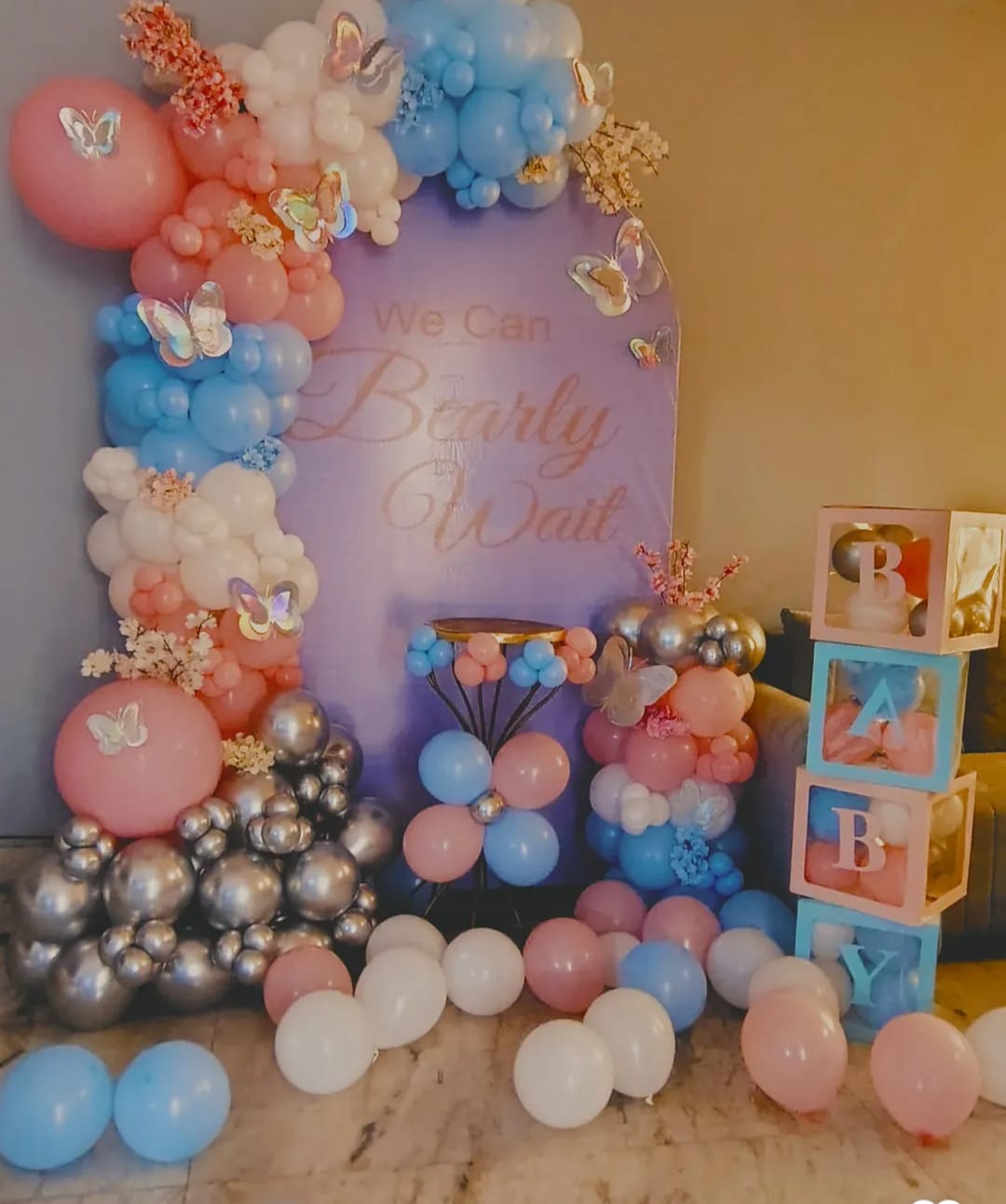 1 Round cake table (decorated with balloon flower)