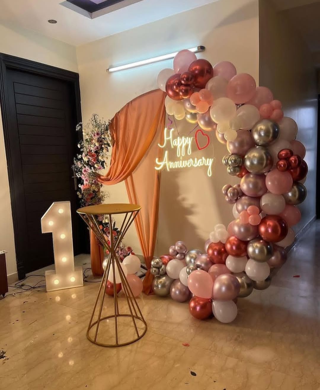 Neon Light: “Happy Anniversary” with a heart motif in soft neon glow